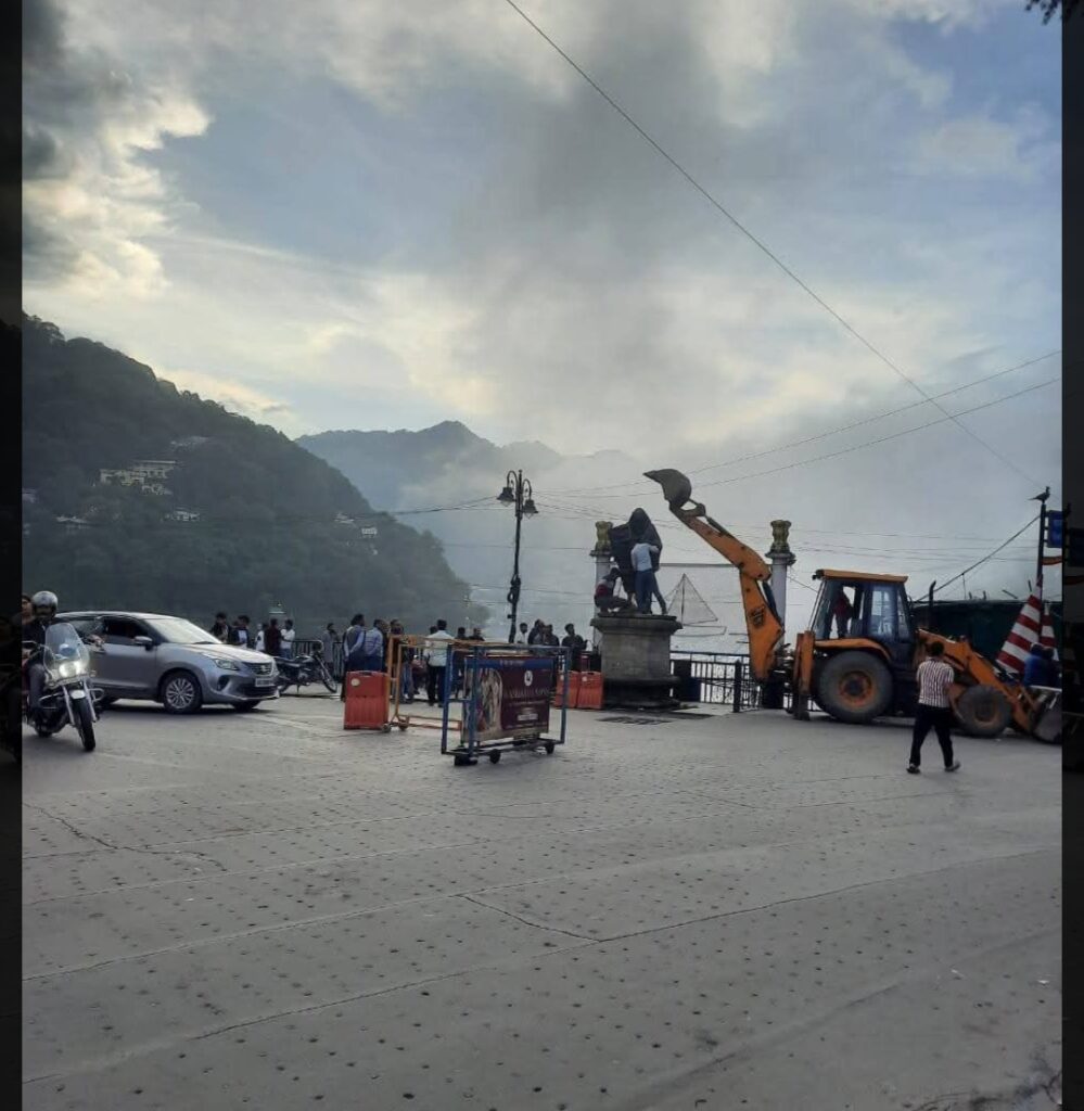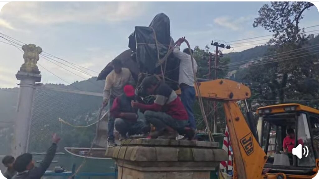 आखिरकार आज नैनीताल में कई दशकों की स्थापित महात्मा गांधी की प्रतिमा को सुरक्षित ढंग से हटाया, स्ट्रक्चर पर चली जेसीबी