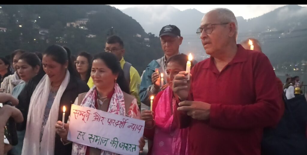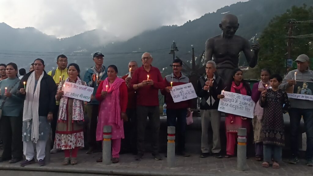 जिन मुद्दों को लेकर आंदोलन कर रहे हैं, वह पूरे हिमालय क्षेत्र और उत्तराखंड में भी प्राकृतिक संसाधनों की लूट, अनियंत्रित पर्यटन और खनन माफिया की घुसपैठ लद्दाख की ही तरह है। वांगचुंक उसी का विरोध कर रहे थे। इस दौरान सभी ने आवाज बुलंद करते हुए वांगचुक को तत्काल रिहा करने की मांग की है। कार्यक्रम के अंत में सभी आंदोलनकारी ने “रघुपति राघव राजा राम” पति को पवन सीता राम गाकर कैंडल जलाई और सभा का समापन किया गया। इस मौके पर पद्मश्री शेखर पाठक, राजीव लोचन शाह, यशपाल रावत, डॉ.हरीश भट्ट, डा. सी. एस. रौतेला, डॉ. गंगा सिंह बिष्ट, डॉ. शीला रजवार, दिनेश डंडरियाल, माया चिलवाल, एडवोकेट कैलाश तिवारी, दिनेश उपाध्याय, खष्टी बिष्ट, मनमोहन चिलवाल, लीला बोरा, हरीश पाठक, तरुण, रुपिन पाठक, संध्या शर्मा, पंकज भट्ट, भारती जोशी, प्रियंका, शिखा रावत, मोहनचंद कांडपाल सहित अन्य लोग मौजूद थे।