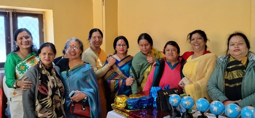क्लब की अध्यक्ष हेमा नेगी, सचिव गीता पांडे, रेखा वर्मा, आरती बिष्ट, मीना साह, नीरू साह, कल्पना साह ,शोभा तिवारी, गीता साह, गीता बावड़ी,भारती कविता त्रिपाठी, दीपा तिवारी, मंजू, भगवती, रेखा त्रिवेदी, रश्मि शर्मा, सीमा साह, ममता कुमय्या, पुष्पा आदि उपस्थित रहे। संचालन बिनीता पांडे ने किया।