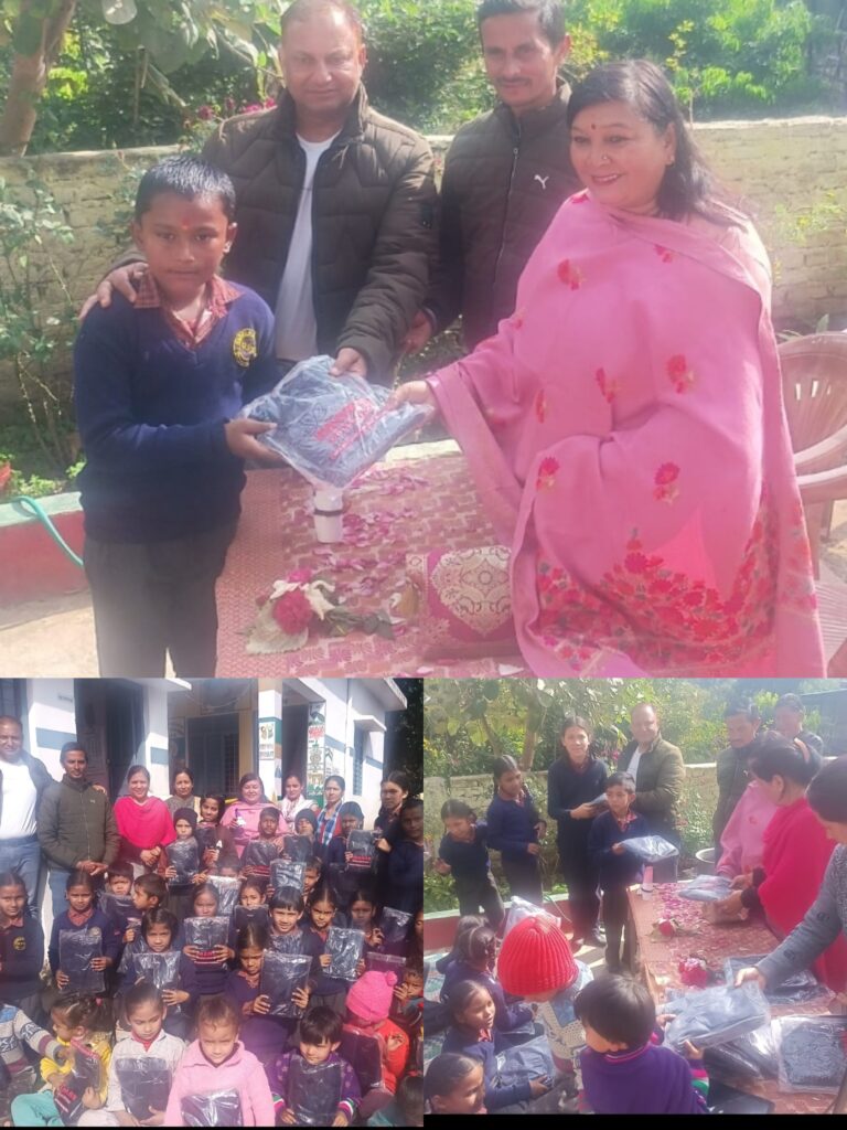 समाजसेवी कविता गंगोला ने बांटे बच्चों को स्वेटर, स्वेटर पाकर बच्चे हुए खुश,