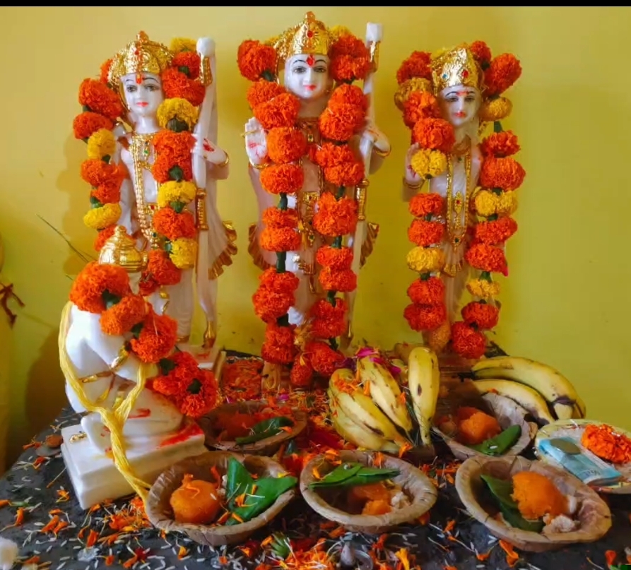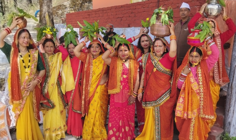 महिलाओं ने कलश यात्रा बडे़ धूमधाम के साथ निकाली। पुरोहित प्रकाश मठपाल के द्वारा अखंड रामायण पाठ का आयोजन हुआ। उसके बाद हवन यज्ञ कन्या पूजन के साथ विशाल भंडारे का आयोजन किया गया।
